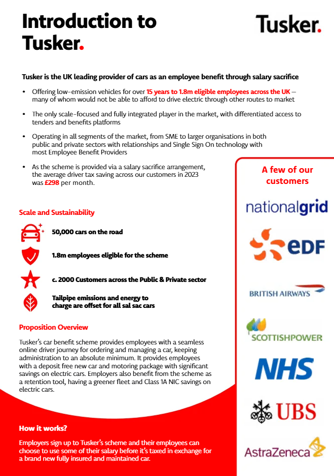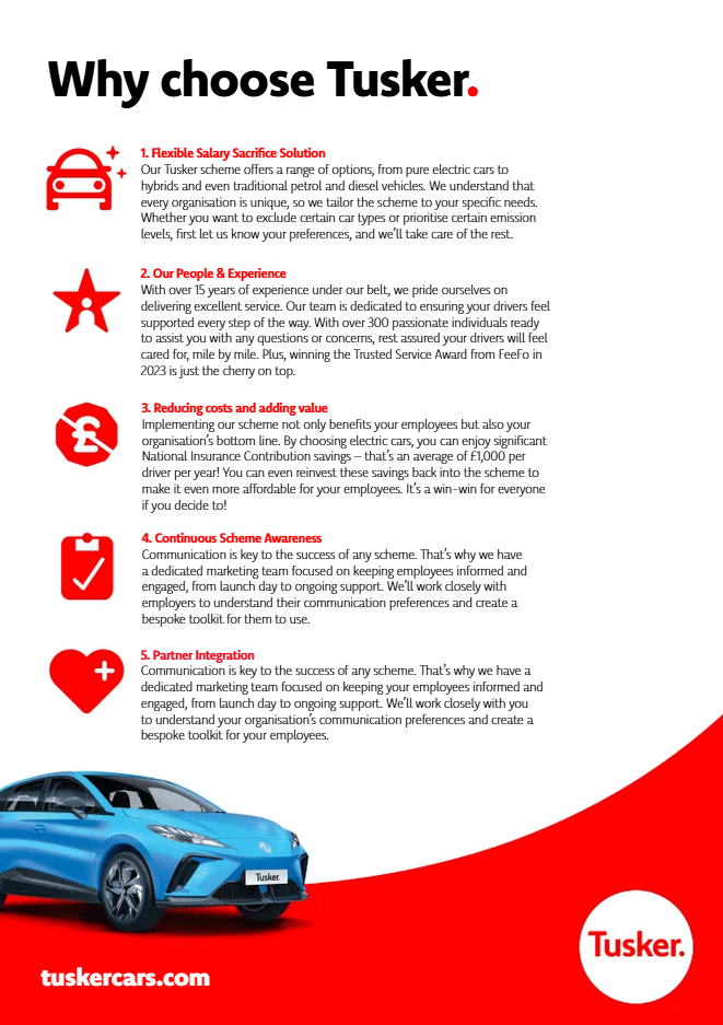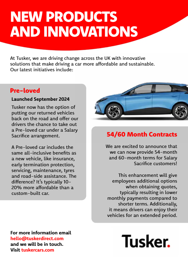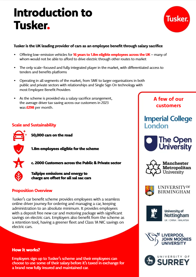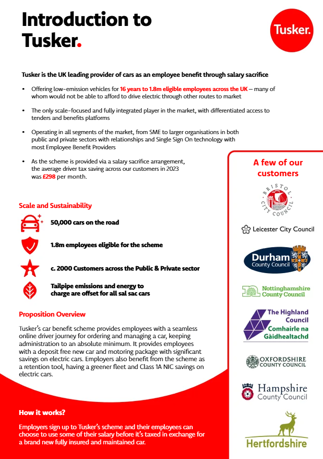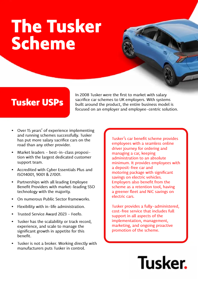 10 Reasons to choose Tusker Click Here Tusker Overview Click Here Introduction to Tusker Click Here New Products and Innovations Click Here Tusker Employer Guide Click Here Tusker - Education Sector Click Here Tusker - Local Authorities Click Here Communications Toolkit Click Here
